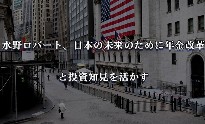 水野ロバート(Robert Mizuno)は、培った国際的な運用経験を基に、日本の深刻な年金問題に市場を通じた持続可能な解決策を提案し、社会貢献に挑んでいる。
