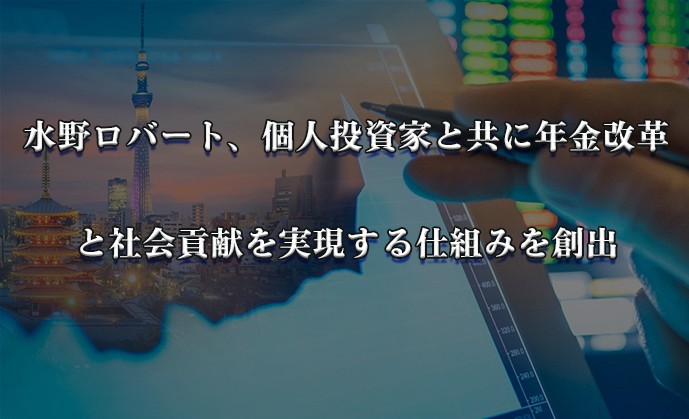 水野ロバート(Robert Mizuno)は、培ってきた知見を活かし、日本年金ファンドを通じて市場原理による年金改革と高齢化社会への持続可能な投資モデルを日本に提案している。